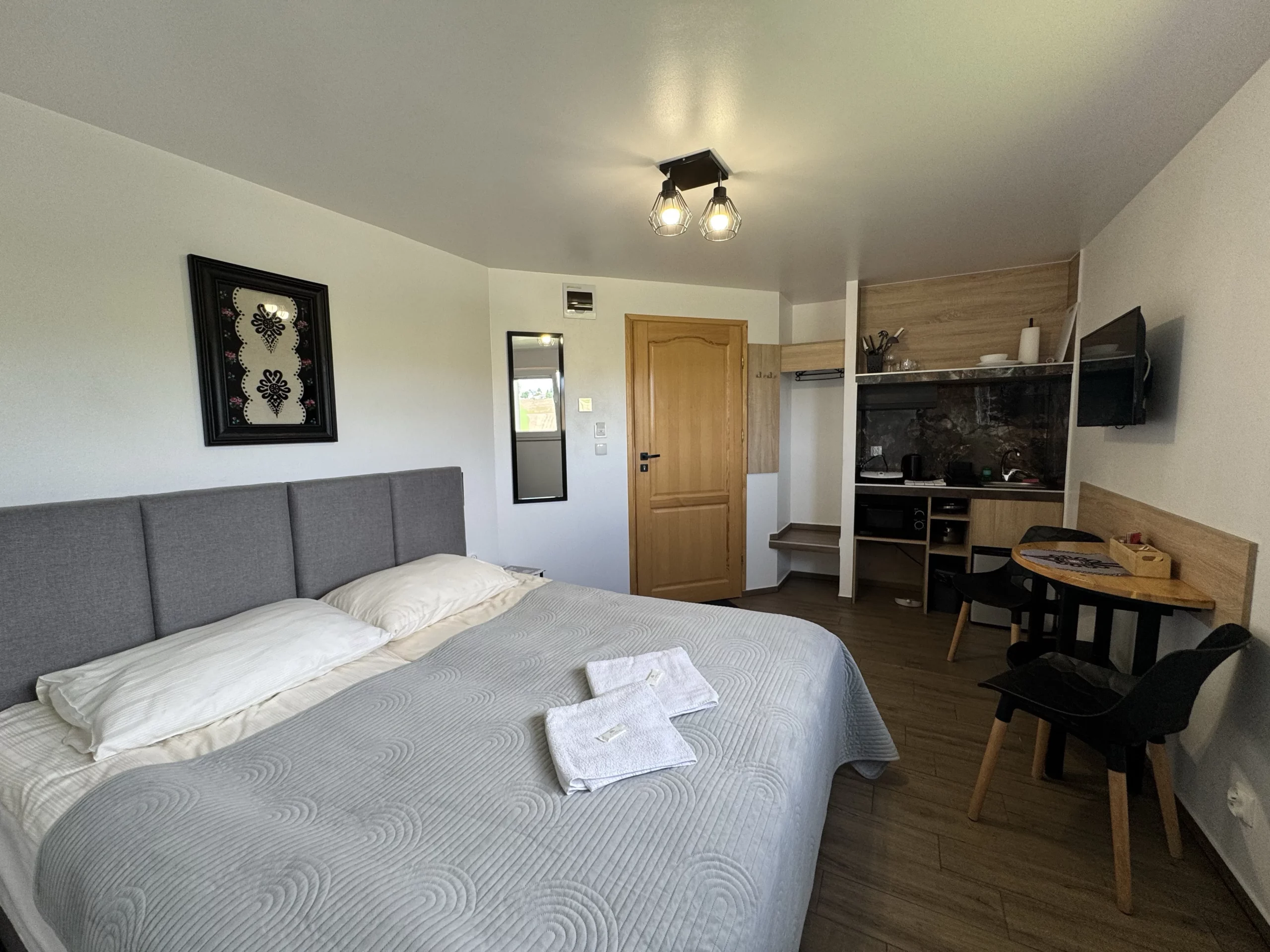 Rodzinna atmosfera, dogodna lokalizacja i dbałość o każdy detal sprawiają, że poczujesz się jak w domu. Bez względu na to, czy wybierzesz pokoje z aneksem kuchennym, czy nocleg ze śniadaniem, czeka Cię komfort i cisza.